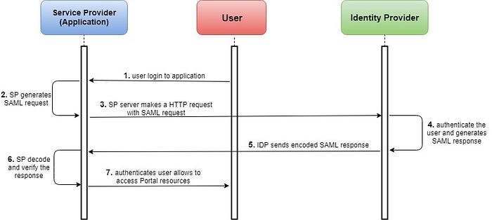 As per wikipedia: “The SAML specification defines three roles: the principal (typically a human user), the identity provider (IdP) and the service provider (SP).In the primary use case addressed by SAML, the principal requests a service from the service provider. The service provider requests and obtains an authentication assertion from the identity provider. On the basis of this assertion, the service provider can make an access control decision, that is, it can decide whether to perform the service for the connected principal.”